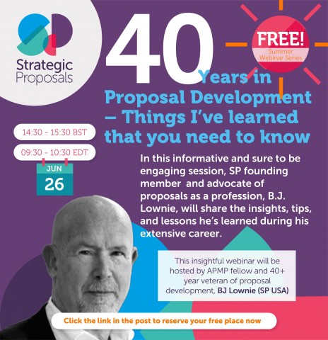 The last in our 2023 summer webinar series was BJ Lownie with lessons learned from 40 Years in Proposal Development.