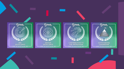 We're up for Bid excellence: Jon Beardmore, Design excellence: Marian Paton, Contribution to the profession: Graham Ablett and Outstanding leadership: Lorraine Baird.