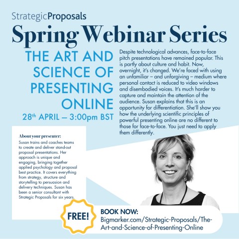 It's time for the annual strategic Proposals spring webinar series! Three fantastic sessions to join. All are advertised on our LinkedIn page and mean you can sign up :)