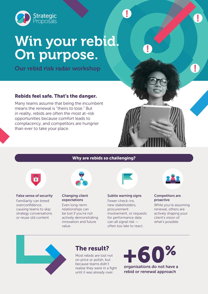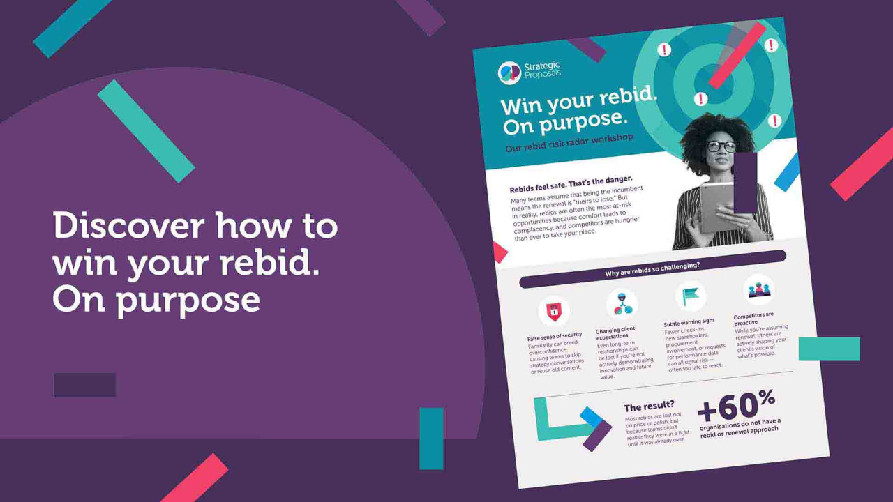 Where to start: a rebid risk radar workshop where we'll help you assess your position, build your strategy, and win the deal you can't afford to lose. Go here to read more.